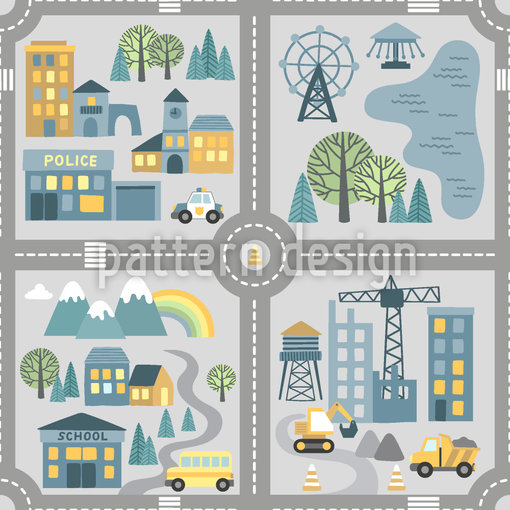 | Description | Childrens map illustration for road play mat with mountains, woods, lakes and buildings. | ||