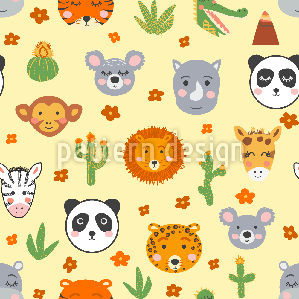 Cute Wild Animal Faces Seamless Vector Pattern Design