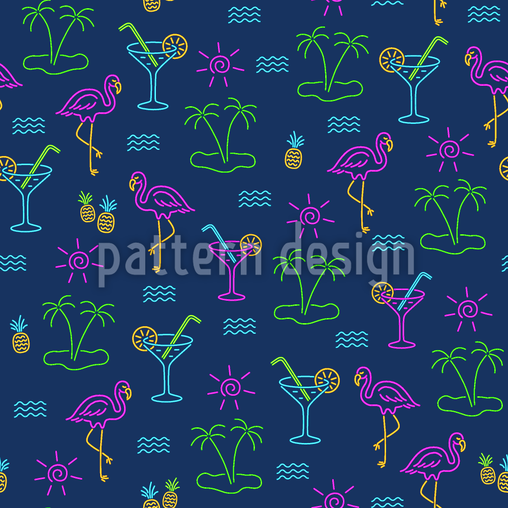 Beach Bar Neon Signs Seamless Vector Pattern Design