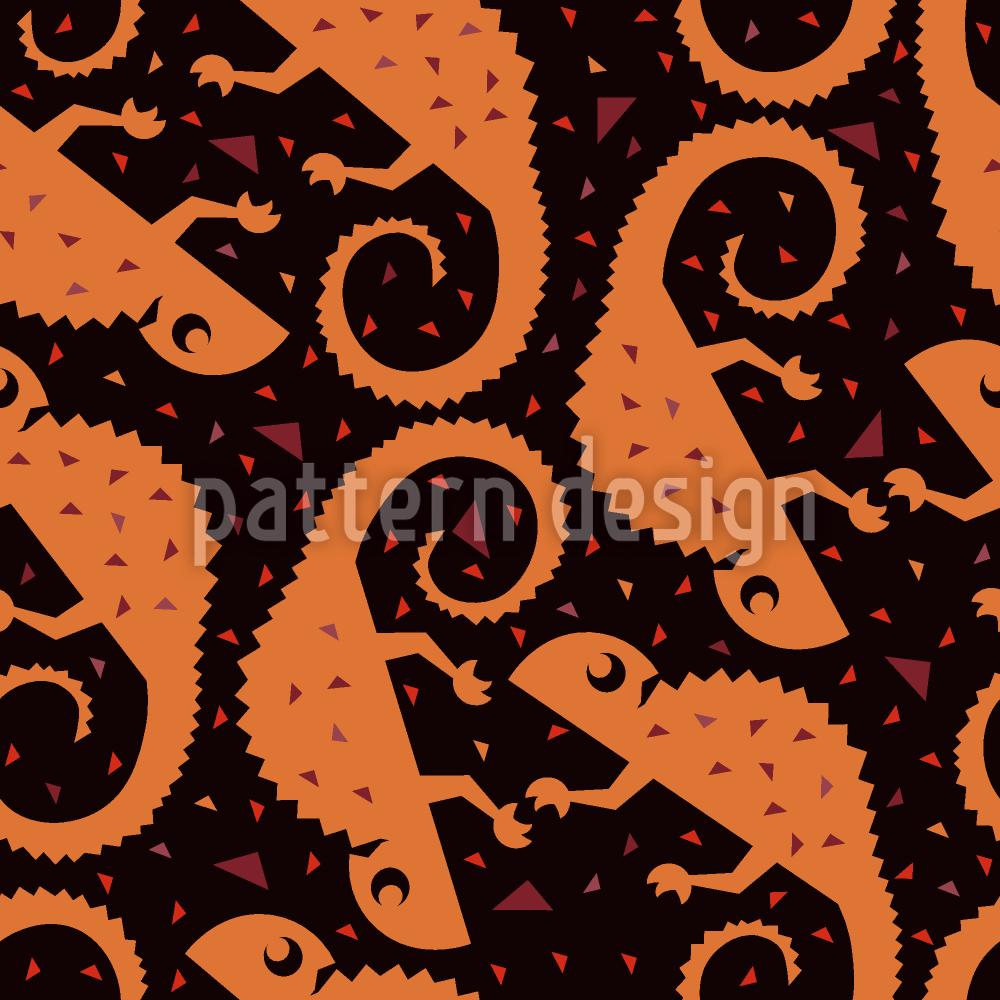 | Description | A dynamic modern pattern combining swirling and geometric shapes in chameleons created by triangles. | ||