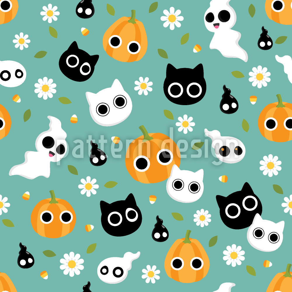Cute Halloween Spirits Seamless Vector Pattern Design