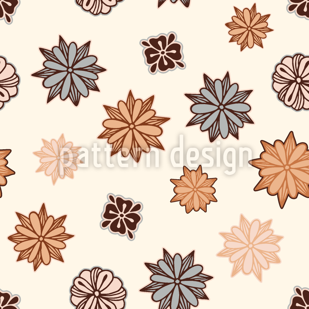 | Beschreibung | Hand Drawn pattern of stylized flowers looking like spice stars. | ||
