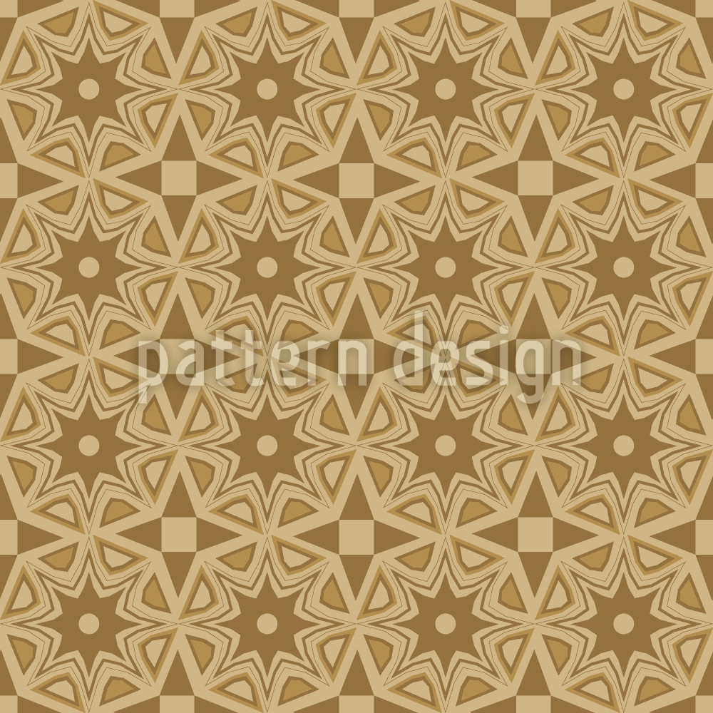 | Description | Geometric pattern featuring intricate interlocking star shapes in varying shades of gold creating a mesmerizing and harmonious design. | ||