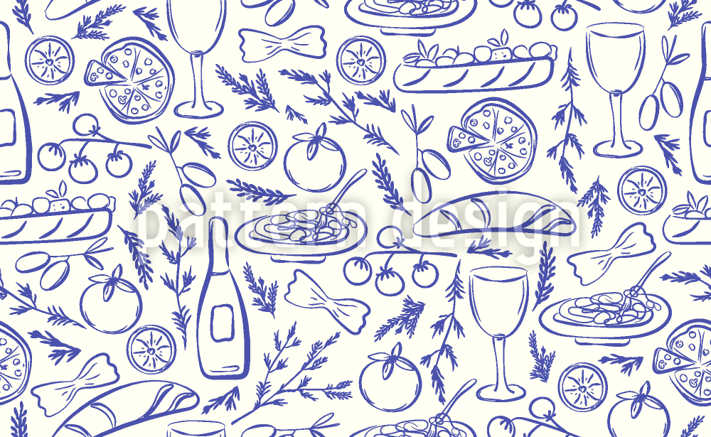 Hand Drawn Italian Dishes Seamless Vector Pattern Design
