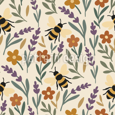 Bees dancing through a Meadow Seamless Vector Pattern Design