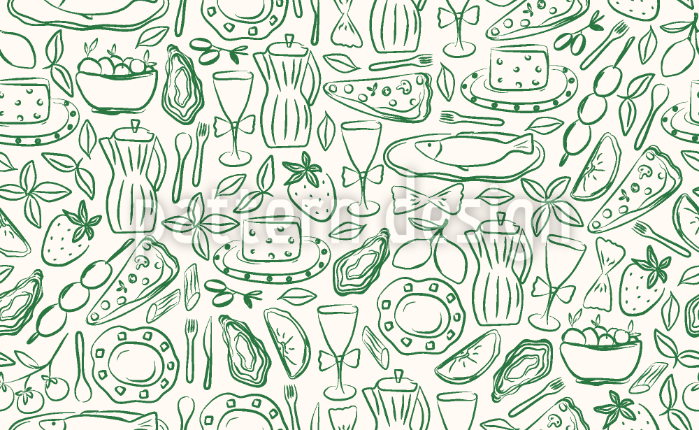 | Description | Hand drawn Italian food pattern in chalk sketch doodle style. | ||