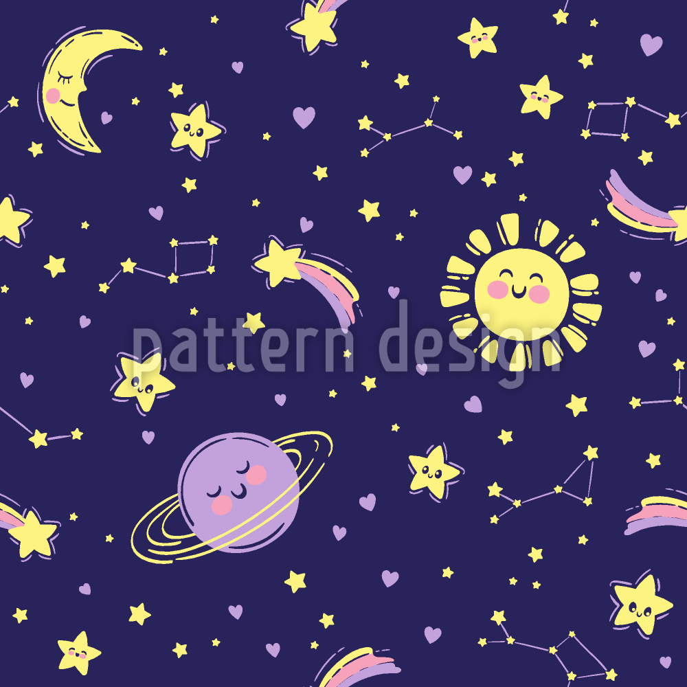 | Description | Outer space pattern with smiling suns, star and planets, constellations, moon, hearts and colorful shooting stars. | ||