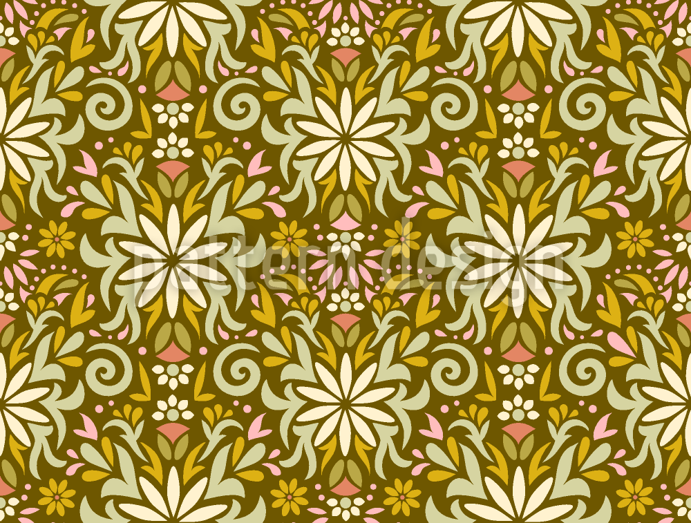 | Description | Floral shapes and curved lines in an all-over design inspired by oriental ornaments in mid-century colors. | ||