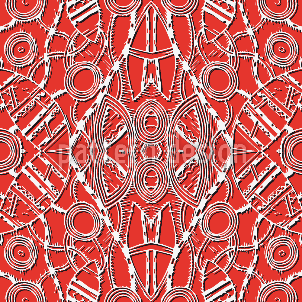 | Description | Filigree ethno-drawing design with playful elements on red background- | ||