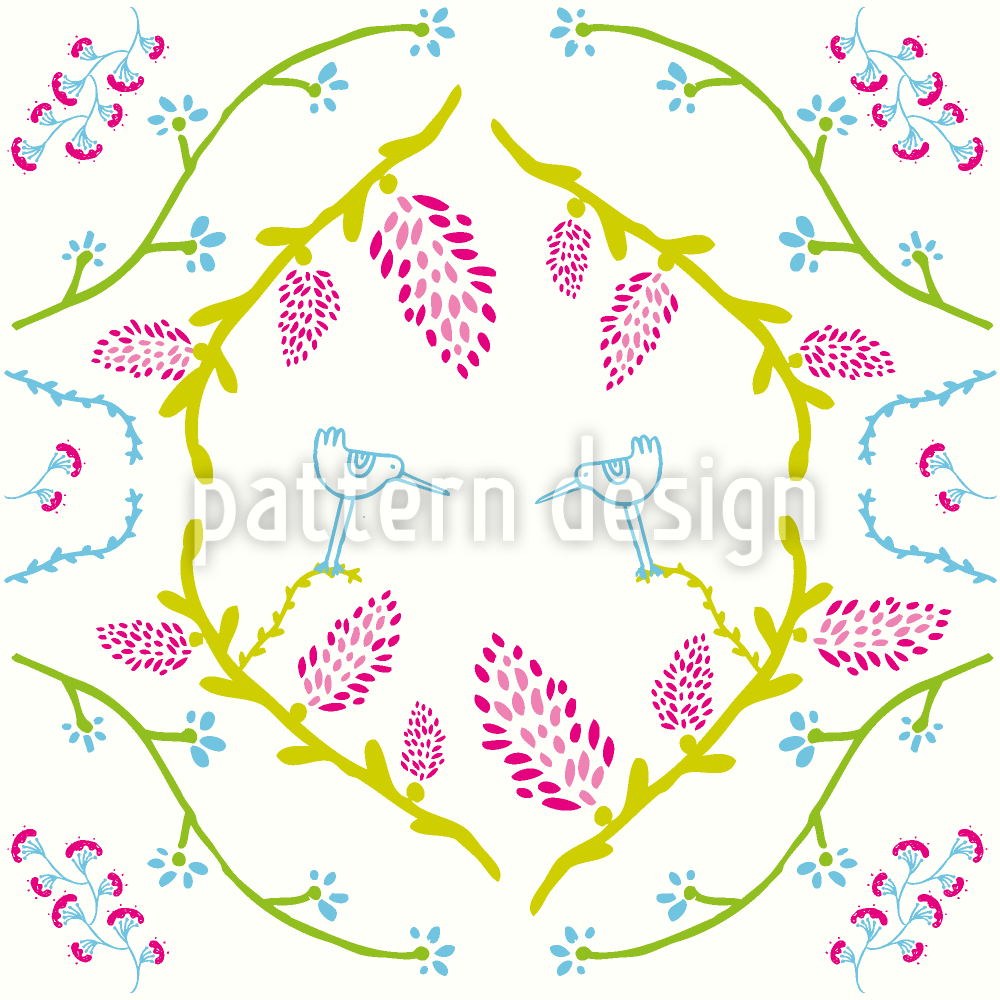 | Descripción | Diseño con flores de primavera y pájaros. | ||