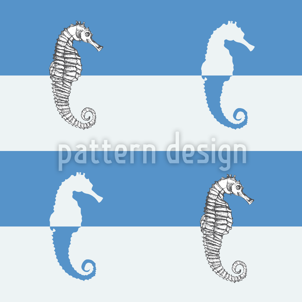Caballitos de mar en rayas azules Estampado Vectorial Sin Costura