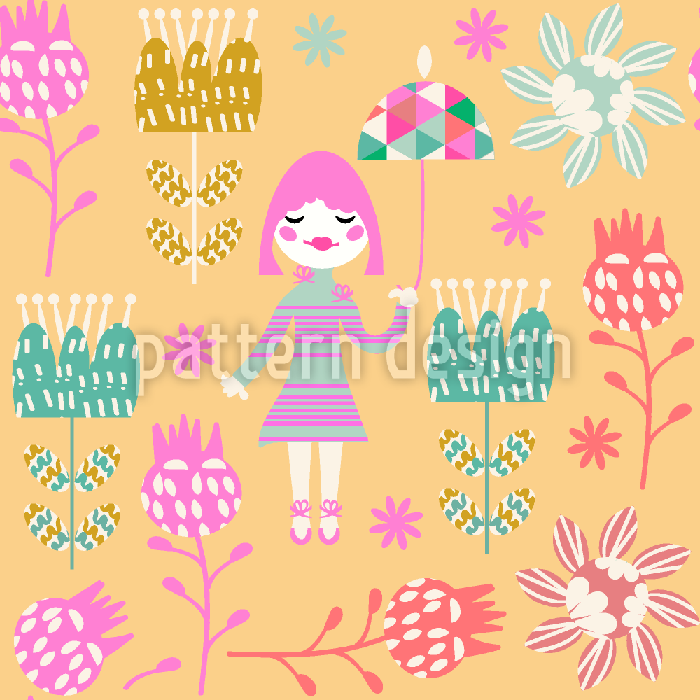 | Descripción | Lindo patrón con muñecas caminando a través de un bosque de flores de fantasía. | ||