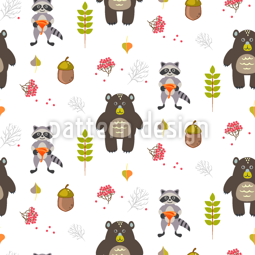 | Descripción | Patrón de otoño sin costuras con osos y mapaches en el bosque. | ||