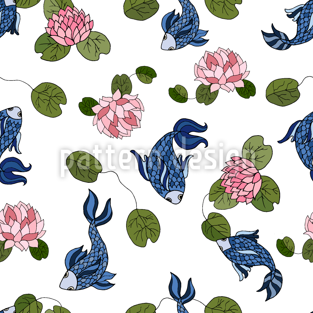 | Descripción | Diseño de patrón con nenúfares y peces en un estanque. | ||
