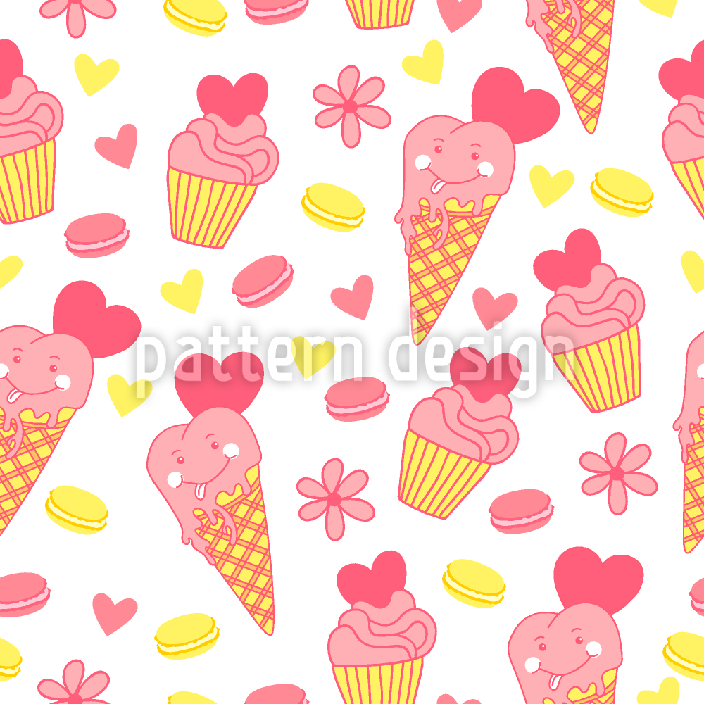 | Descripción | Bonito patrón con magdalenas, macarrones y divertidos conos de helado. | ||