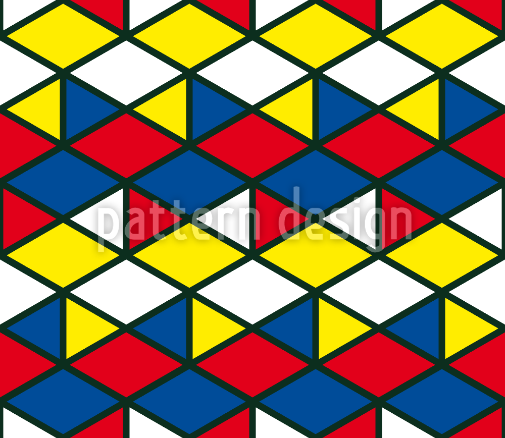 | Descripción | Diseño de patrón de mosaico con triángulos y rombos orientados horizontalmente en estilo mondriano. | ||