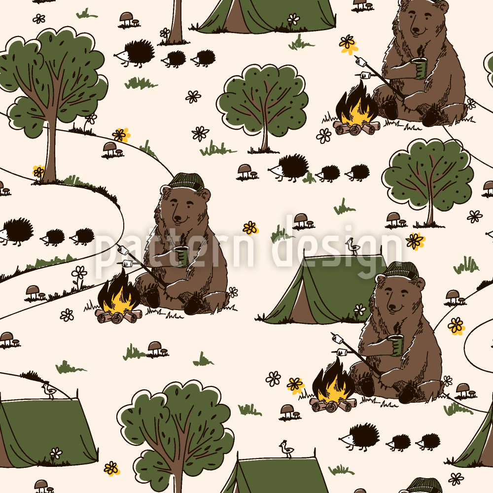 Oso de camping Estampado Vectorial Sin Costura