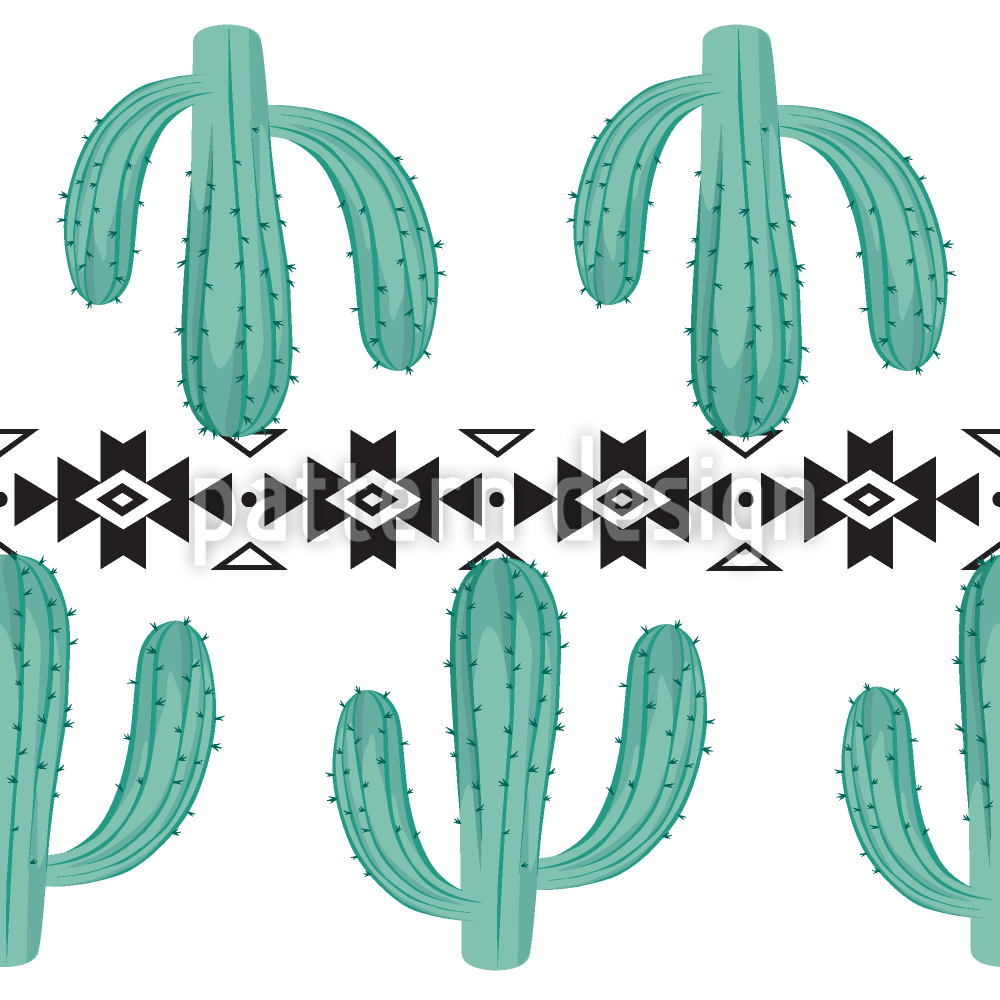 Cactus con elementos tribales Estampado Vectorial Sin Costura