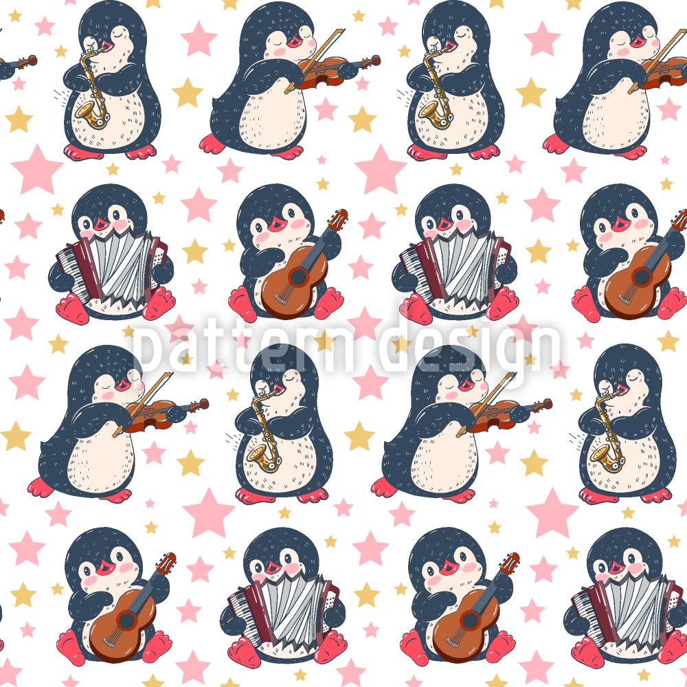 Lindos pingüinos musicales Estampado Vectorial Sin Costura