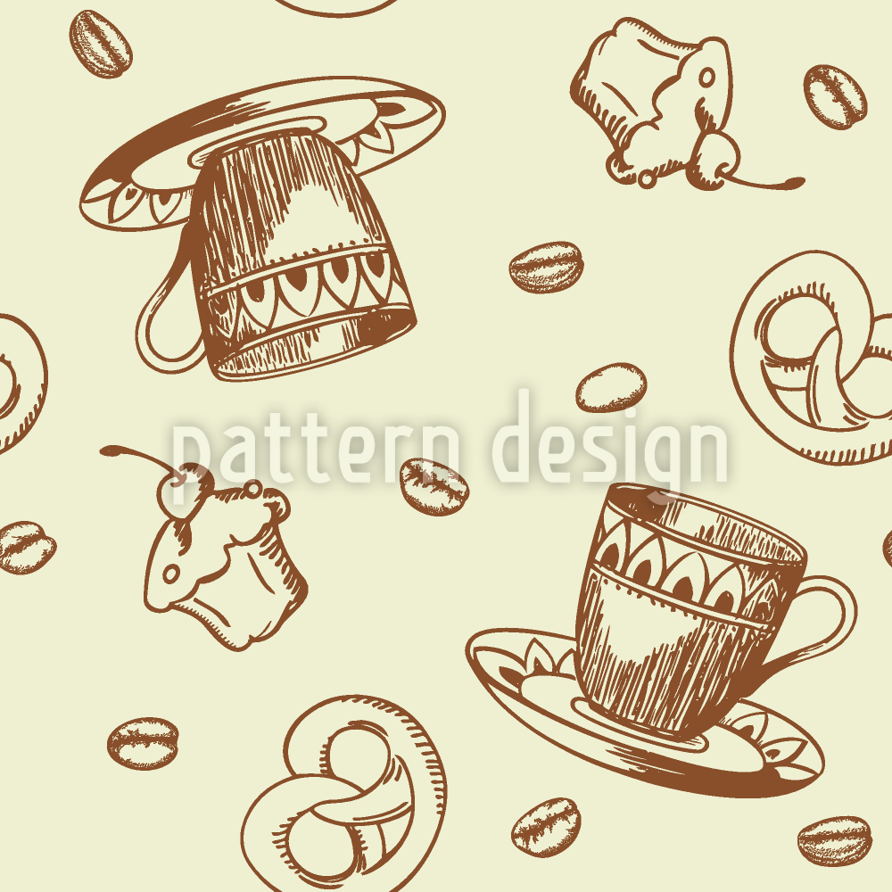 | Descripción | Patrón sin costuras con tazas de café, pretzels y cupcakes. | ||
