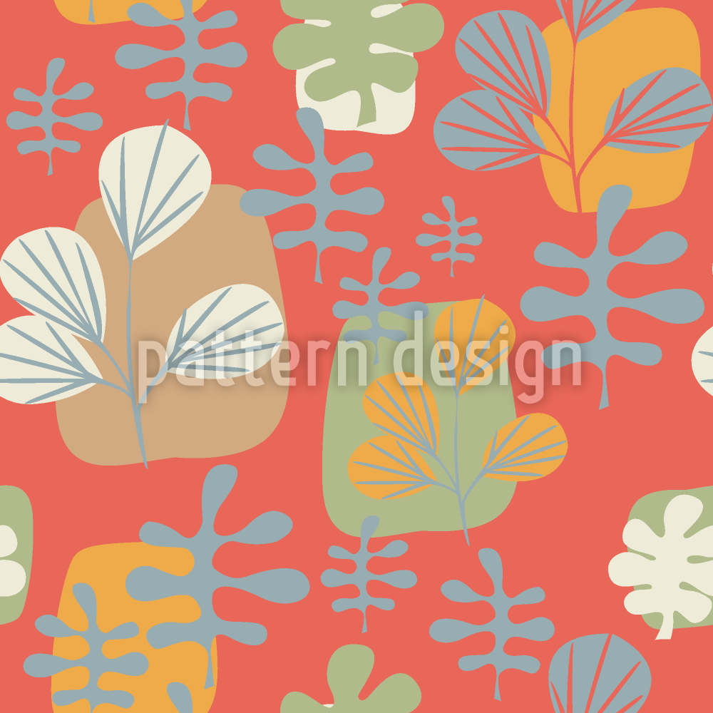 | Descripción | Patrón vectorial con hojas estilizadas y corales en estilo retro. | ||