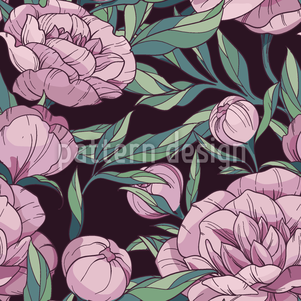 Peonías delicadas por la noche Estampado Vectorial Sin Costura