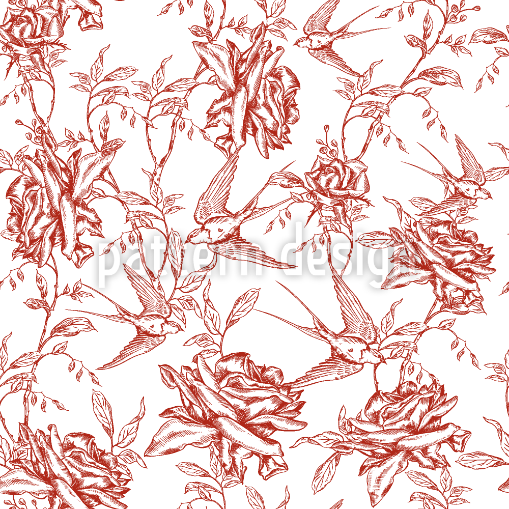 Golondrinas y rosas en vuelo elegante Estampado Vectorial Sin Costura