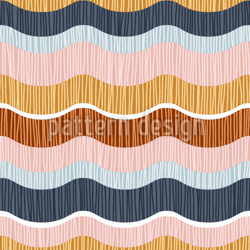 | Descripción | Patrón abstracto con rayas onduladas horizontales en una paleta de colores suaves y apagados llena de líneas verticales dibujadas a mano que crean un aspecto tejido o rústico. | ||