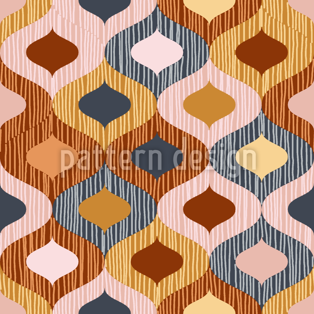 | Descripción | Patrón abstracto con formas de teselación cuadrifolio en una paleta de colores suaves y apagados llena de líneas verticales dibujadas a mano que crean un aspecto tejido o rústico. | ||