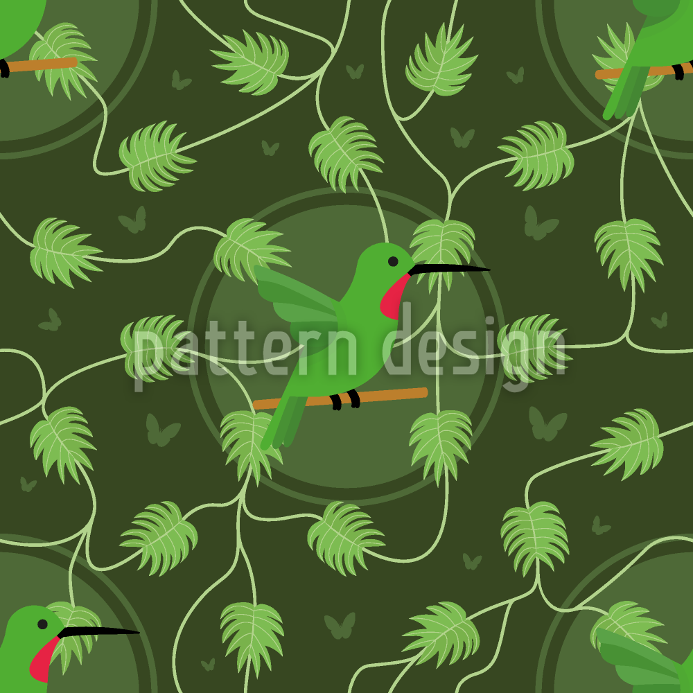 | Descripción | Un elegante colibrí se cierne entre un exuberante follaje tropical rodeado de hojas vibrantes y delicadas mariposas. | ||