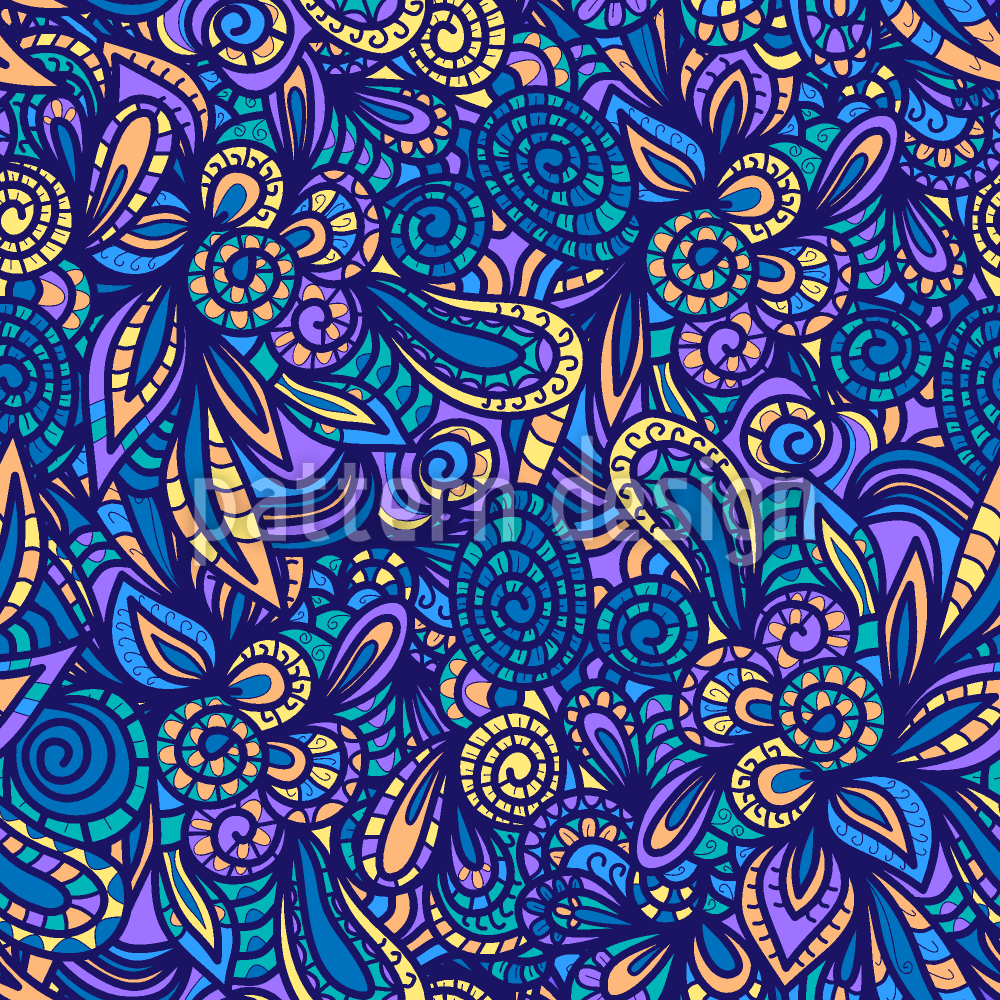 | Descripción | Este intrincado patrón de garabatos dibujado a mano presenta un denso arreglo de cachemir psicodélicos, espirales en espiral y motivos florales orgánicos. | ||