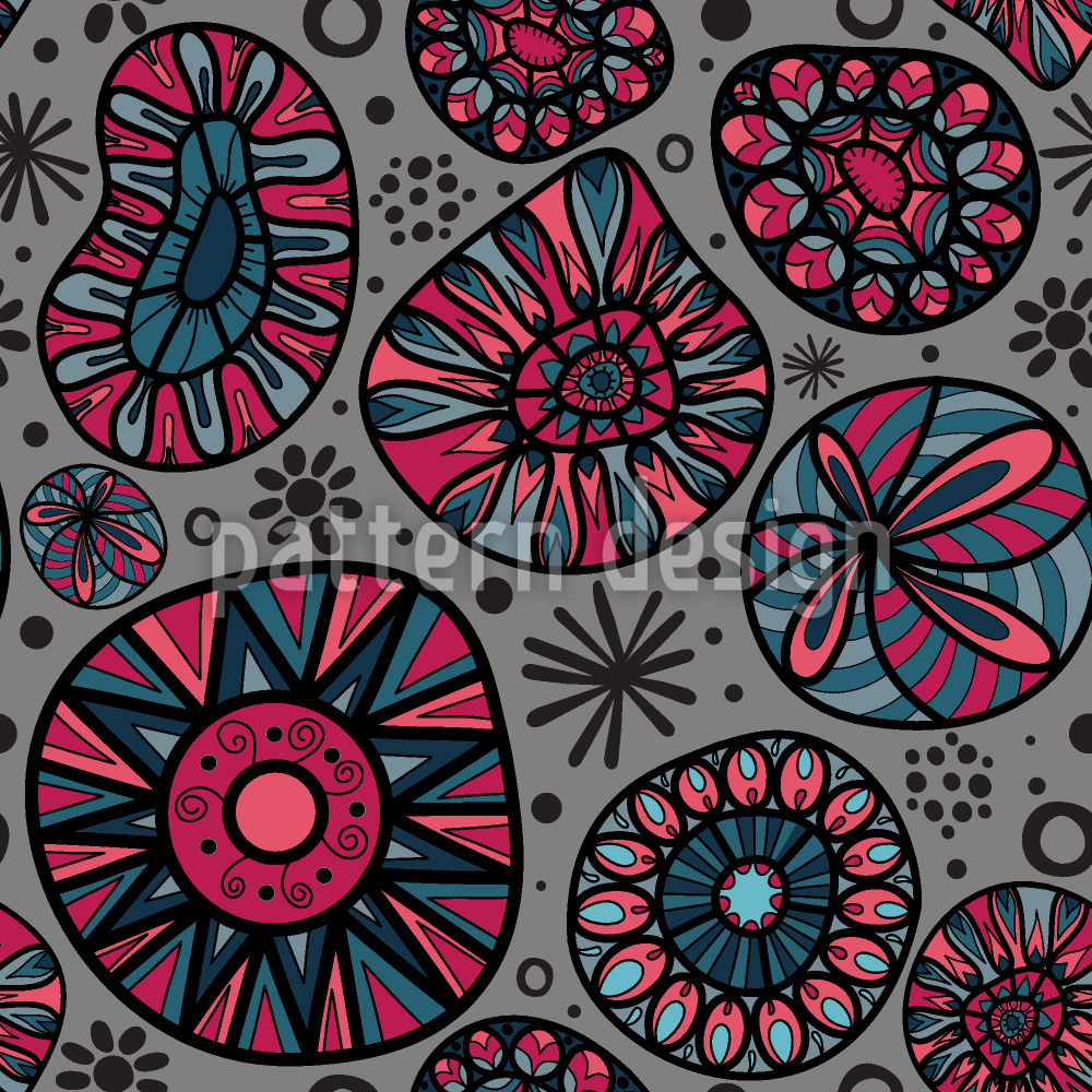 | Descripción | Este estampado bohemio presenta formas orgánicas similares a células llenas de intrincados detalles de garabatos definidos por llamativos contornos negros. | ||