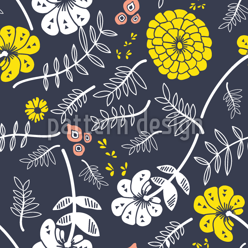 | Descripción | Diseño floral de alto contraste: flores amarillas y blancas sobre fondo oscuro. | ||
