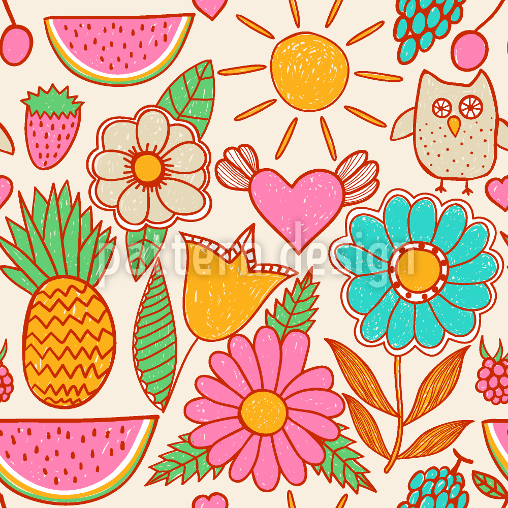| Descripción | Diseño tropical con varias ilustraciones como búhos, piñas y flores. | ||