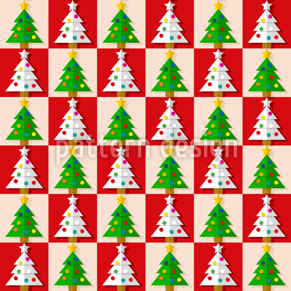 Ajedrez con árboles de Navidad Estampado Vectorial Sin Costura