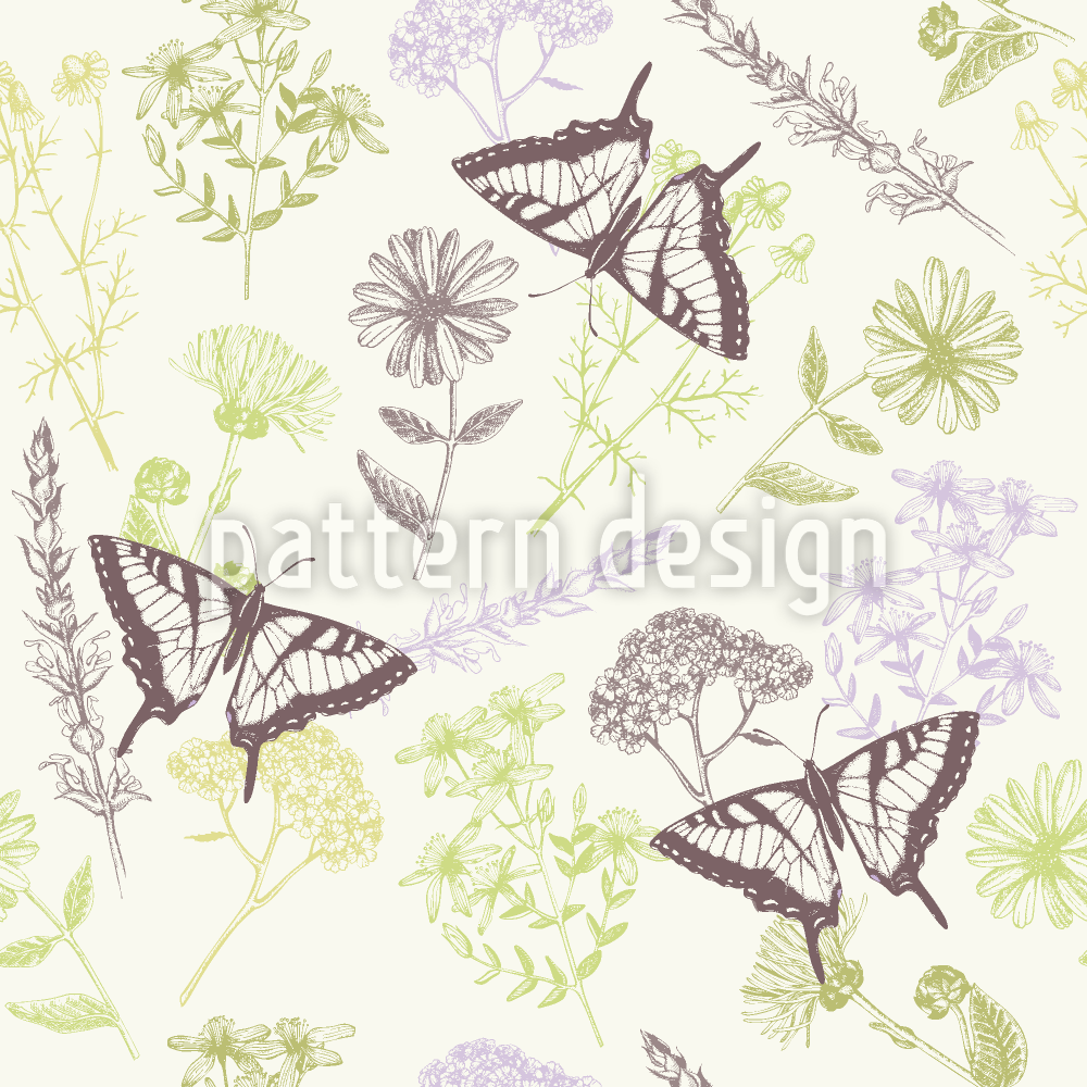 Yrttikasvit Ja Perhoset Saumaton vektorikuvion suunnittelu