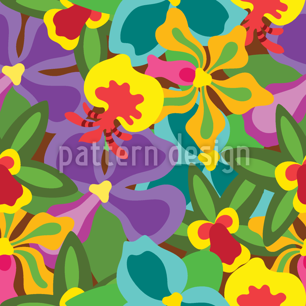 Värikäs orkidea Saumaton vektorikuvion suunnittelu