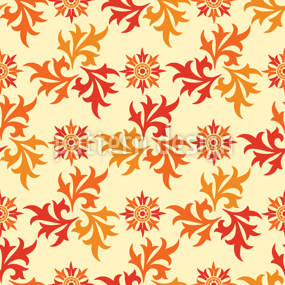 | Kuvaus | Punaisten koristeiden sävyjen kuvio vaaleankeltaisella taustalla | ||