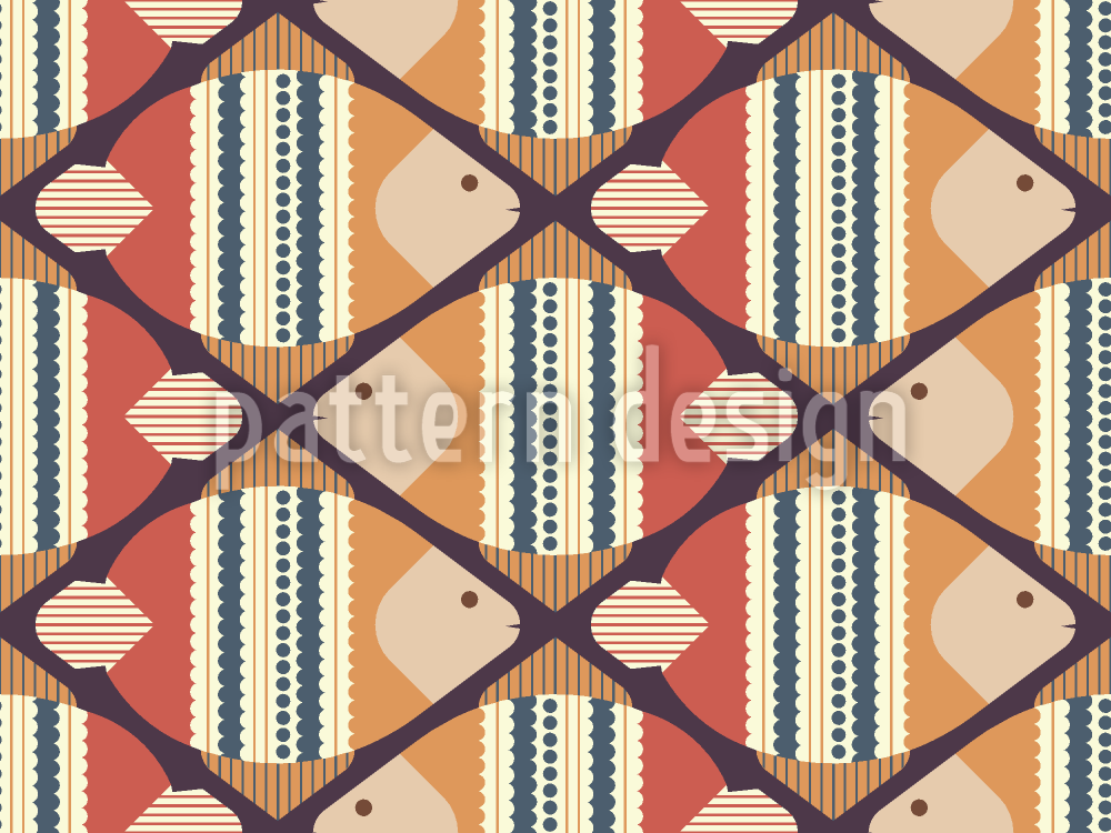Retro-tyylinen raidallinen kala Saumaton vektorikuvion suunnittelu