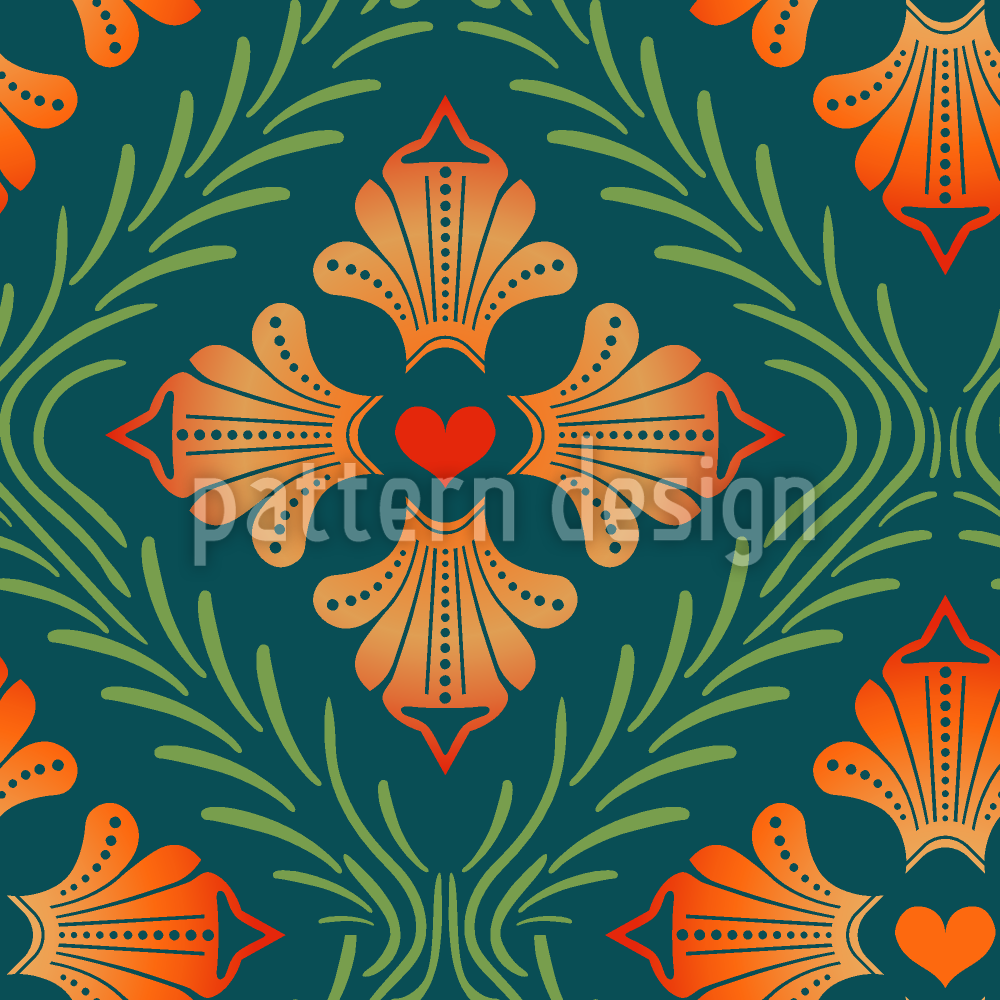 | Kuvaus | Leikkisä kukkakuvio tyylitellyillä kukilla ja sydämellä keskellä. | ||