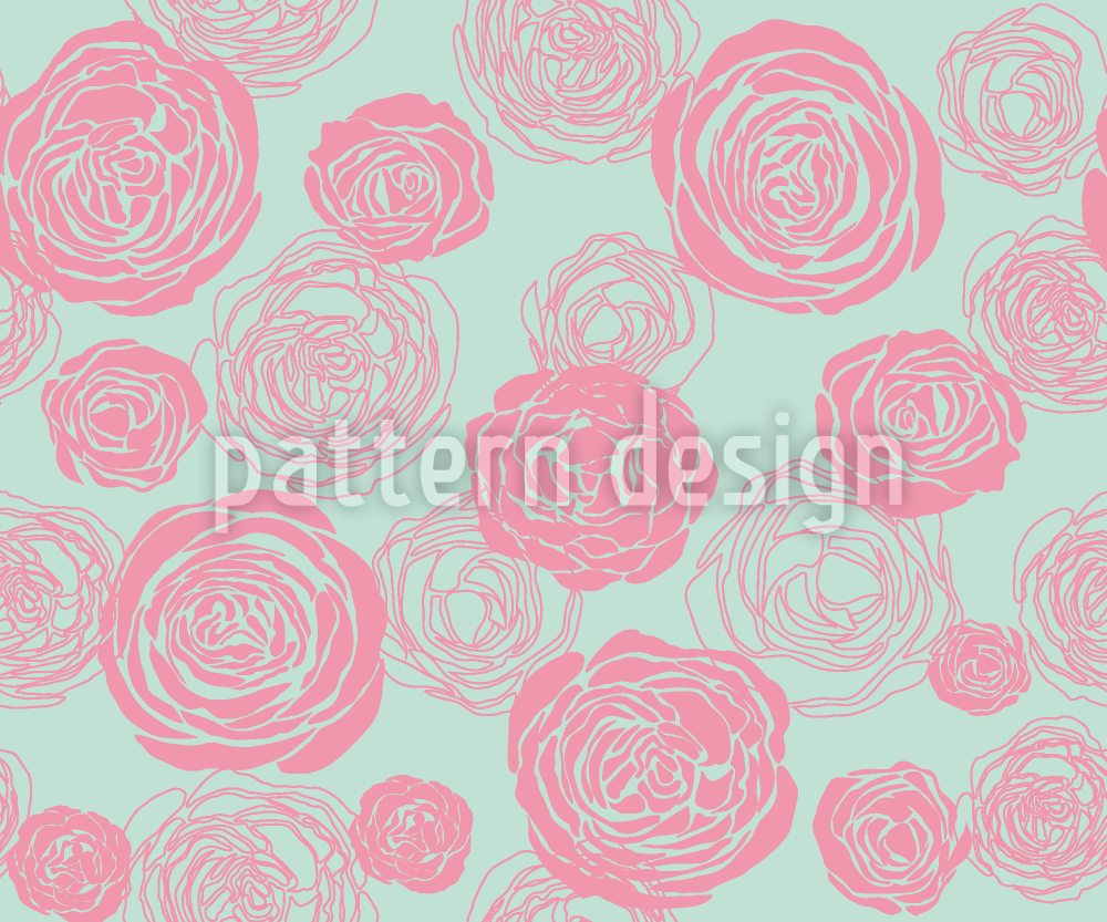 Fleurs de Rose Rouge-Menthe Motif Vectoriel Sans Couture