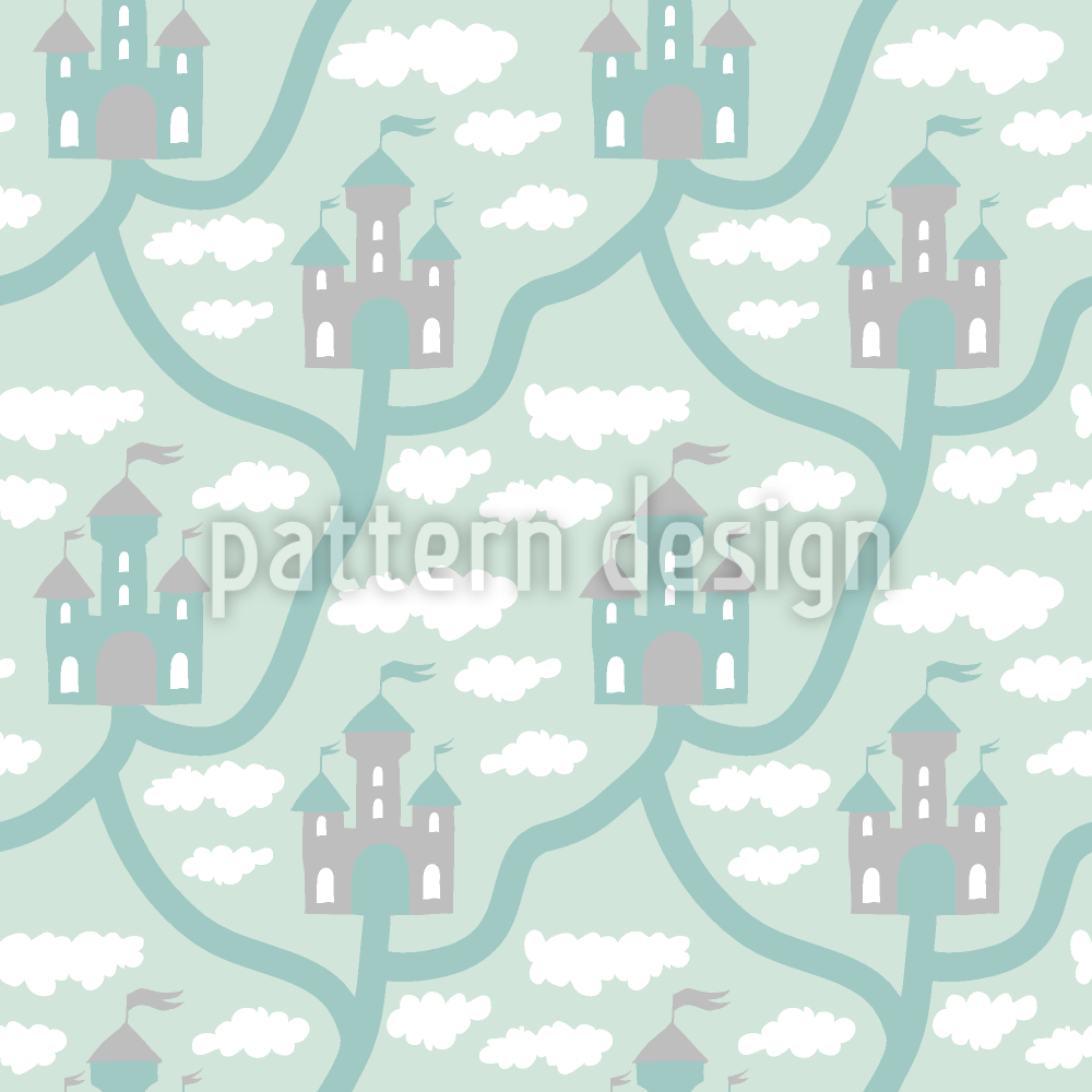 Château Dans Les Nuages Motif Vectoriel Sans Couture