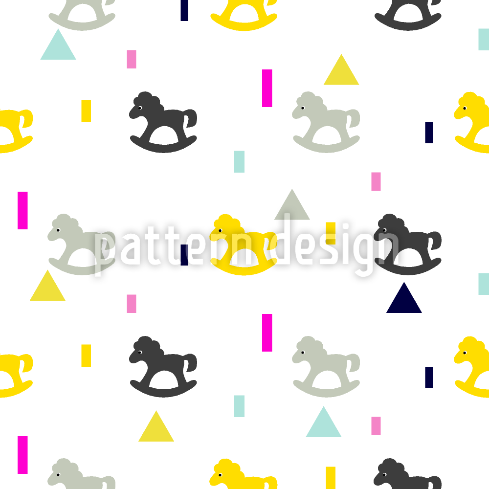 | Description | Motif enfants avec des chevaux à bascule et des éléments géométriques. | ||