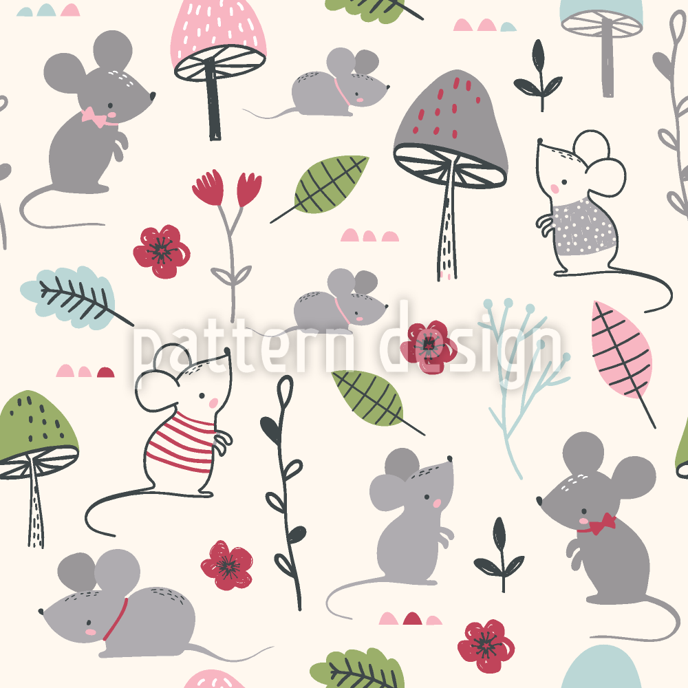 | Description | Mignon motif sans couture avec des souris entre les champignons et les fleurs. | ||