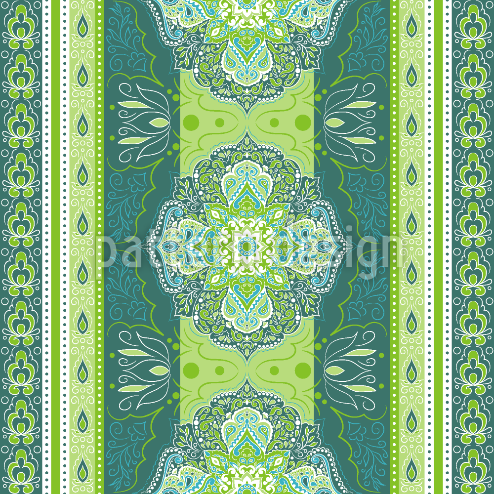 | Description | Modèle indien sans couture avec mandalas combinés dans une bordure. | ||