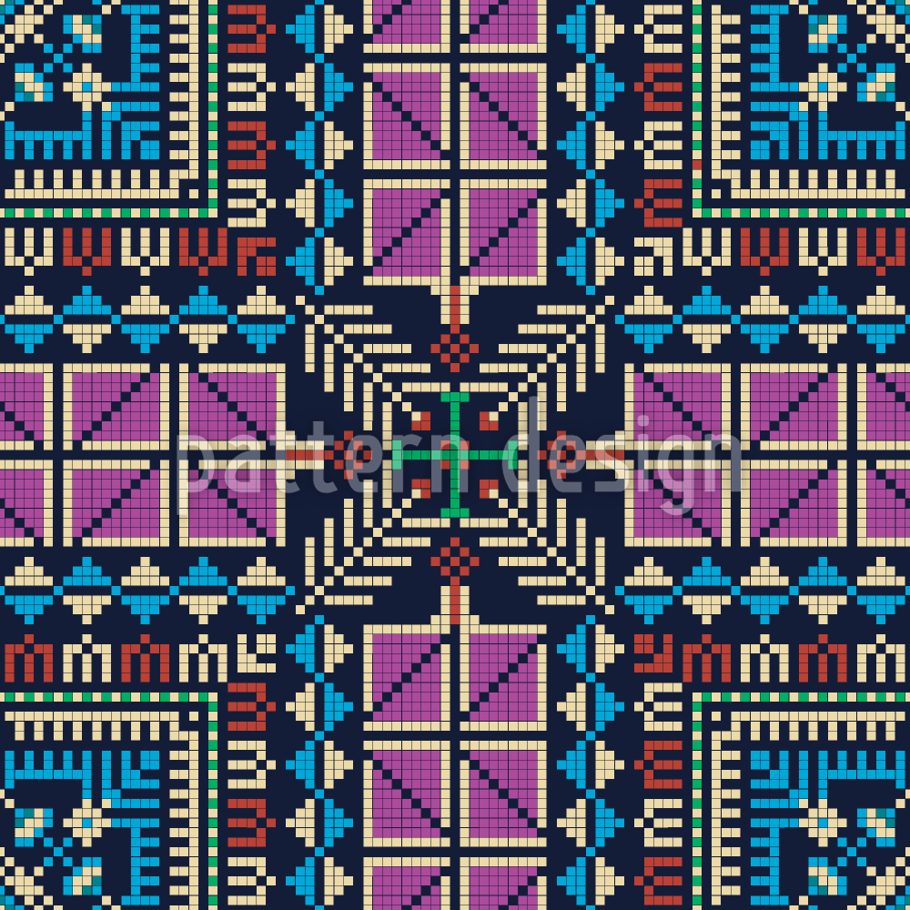 | Description | Ce dessin présente des broderies palestiniennes traditionnelles avec une croix et différentes formes géométriques comme motif. | ||