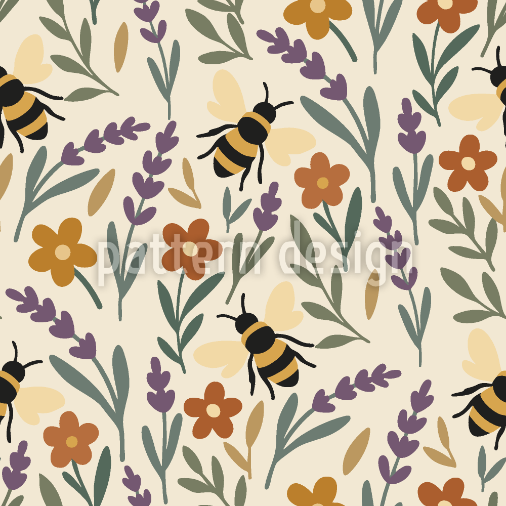 Jardin de fleurs et d'abeilles Motif Vectoriel Sans Couture