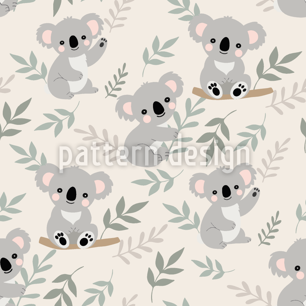| Description | Motif ludique pour enfants représentant des koalas dans diverses poses entourés de feuilles et de branches. | ||