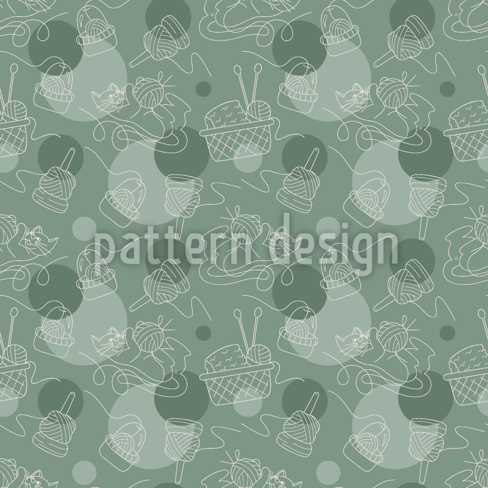 | Description | Motif joyeux avec des paniers remplis de laine et un chat joueur jouant avec une pelote de laine. | ||