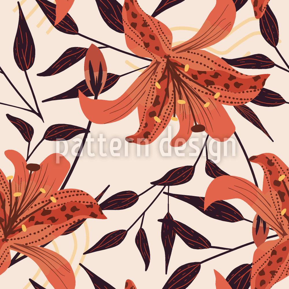 | Description | Charmant motif floral avec des lis tigres éclatants et des feuilles sombres sur un fond crème doux. | ||